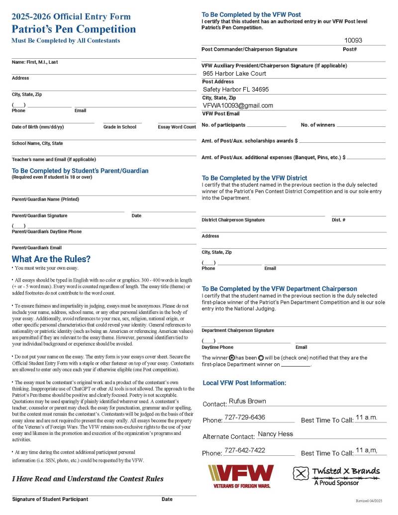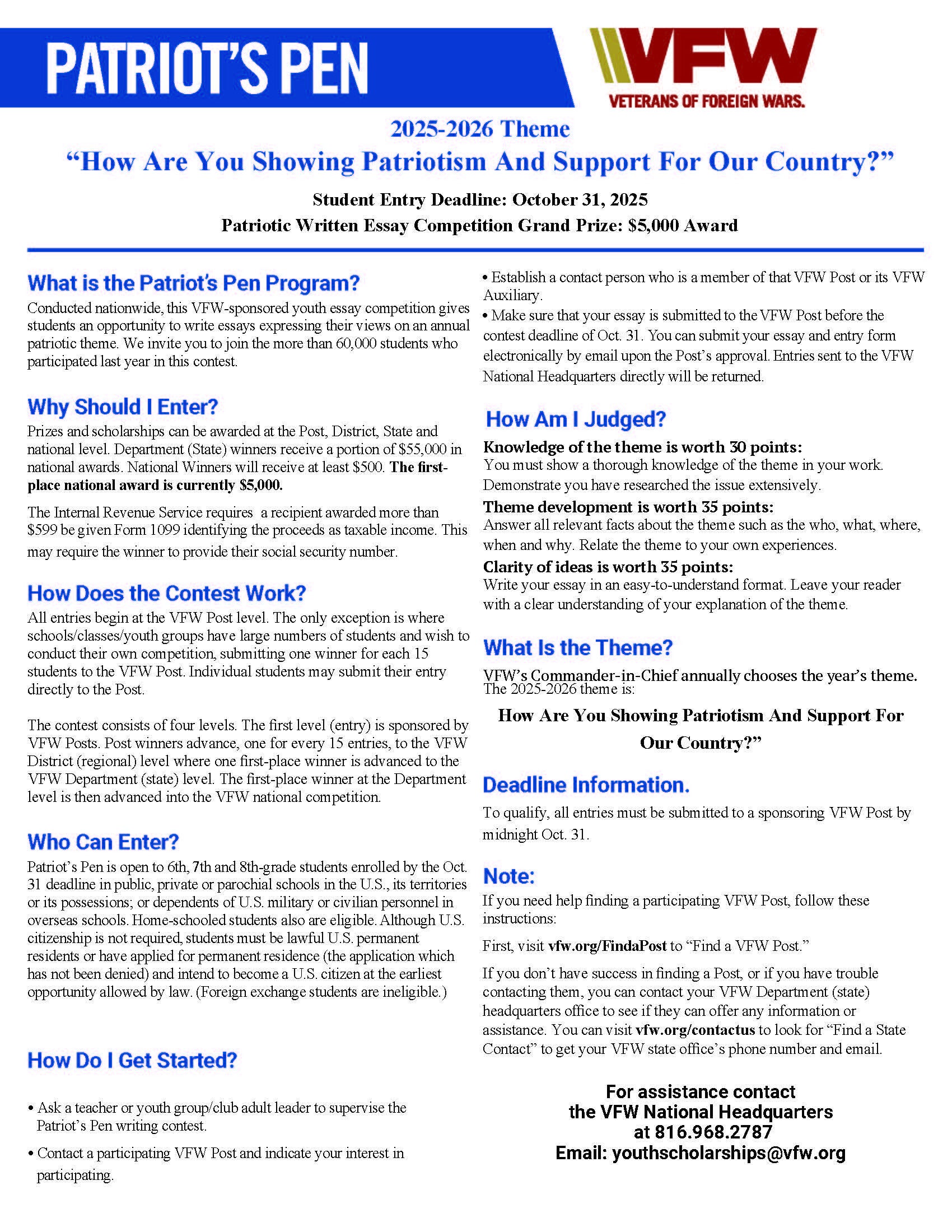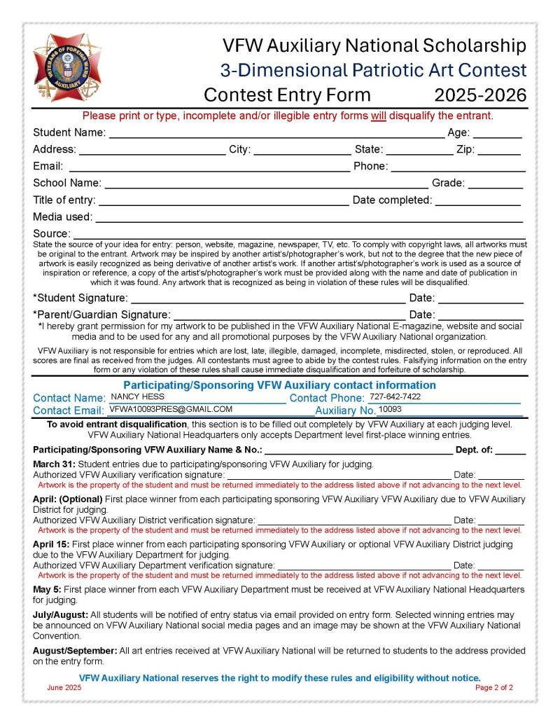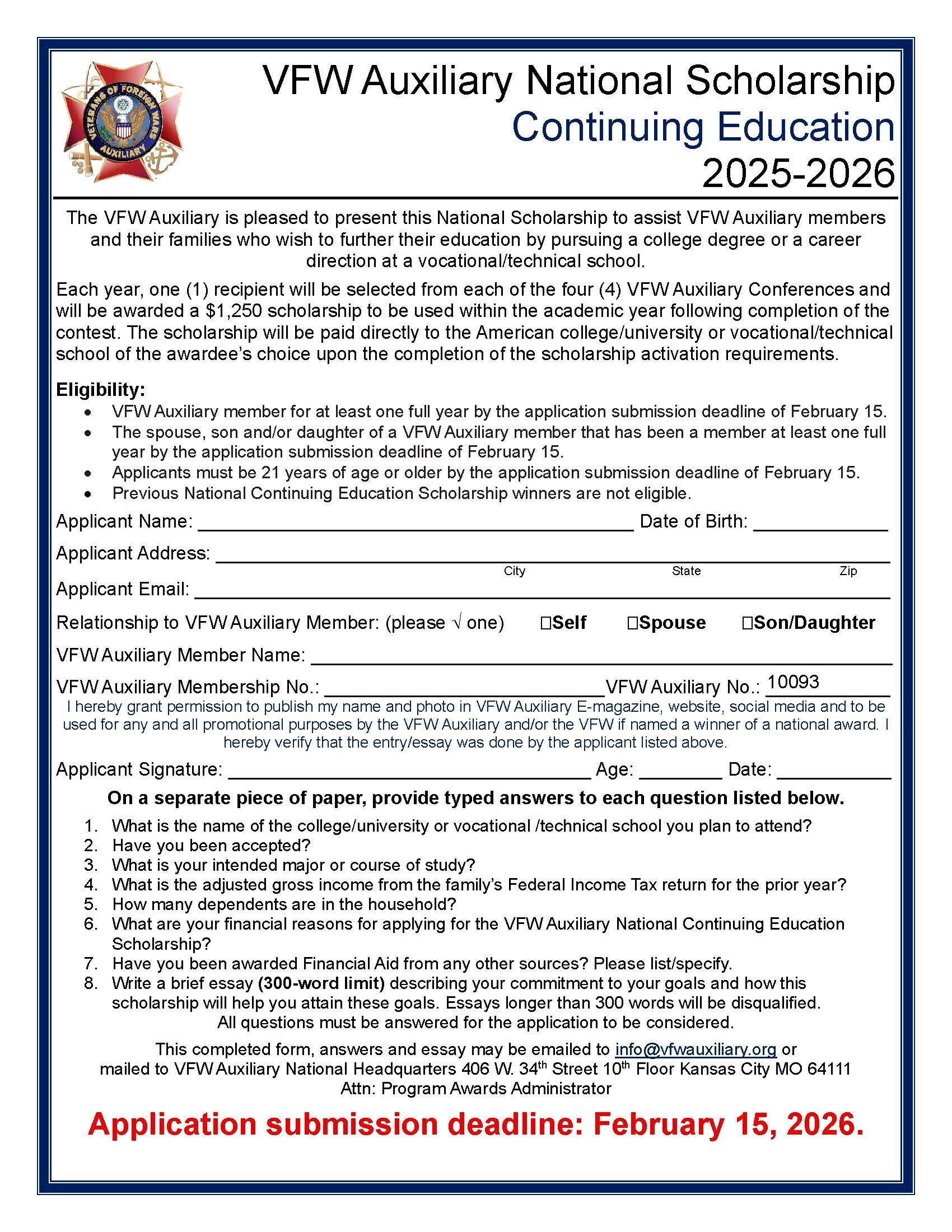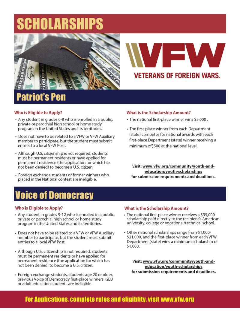 Members Only Of VFWA Post 10093 can apply for Continuing Education Scholarship